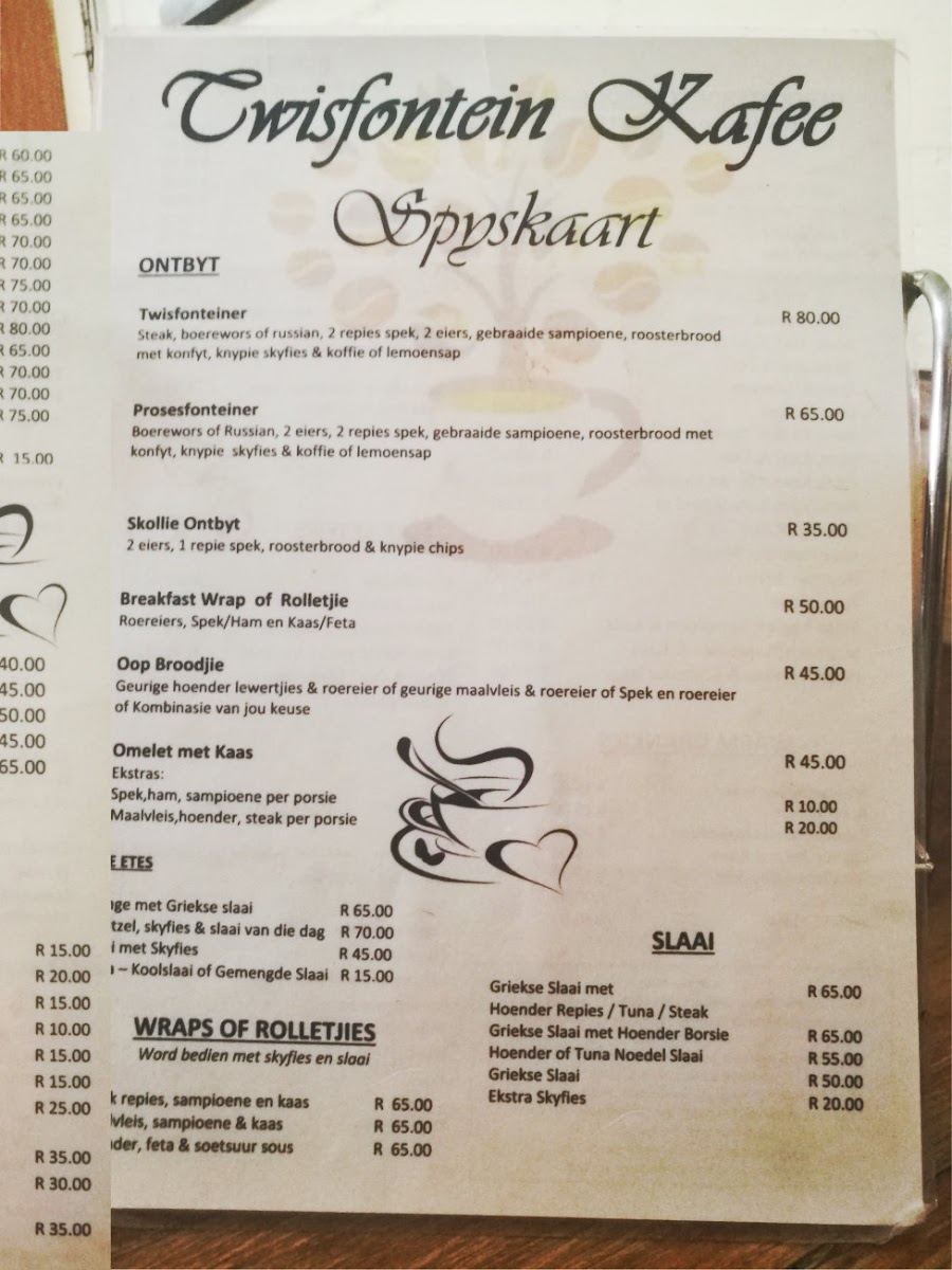 - Convenience: With options for delivery and ample parking, Twisfontein Kafee caters to all your meal needs.